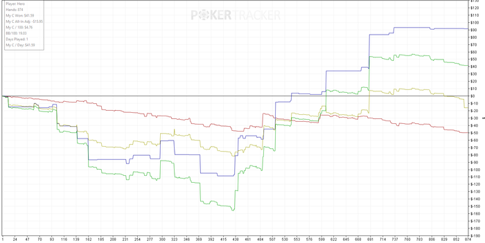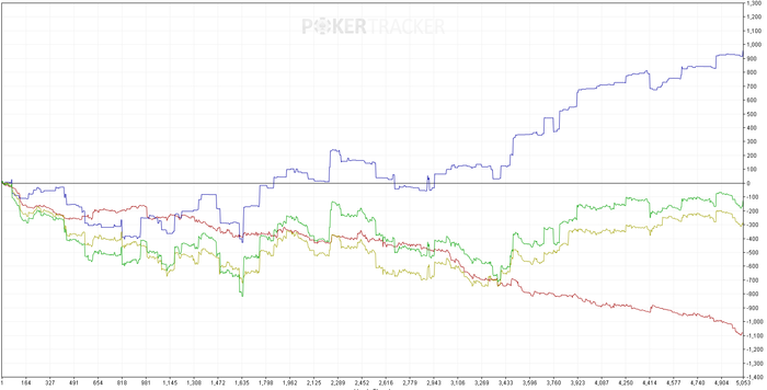 в PT у меня рисует что я выигрываю2 или 3bb/100 в раше на дистанции 100К+ а по факту я играю в -2-3bb/100