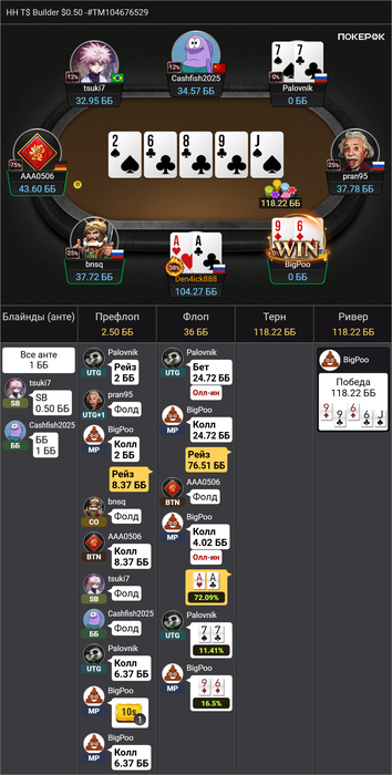 Еще одна раздача, я же вообще ничего выигрывать не должен. Сука не рум, а пиздец. Проигрываю остатки бр и на хуй удаляю эту помойку.