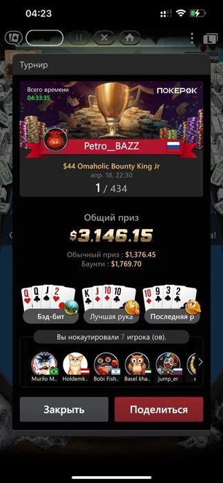 Ищу надежного Бэкера для игры в PLO MTT, готов предоставить: