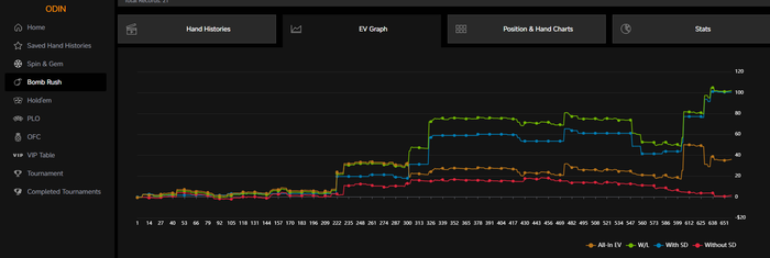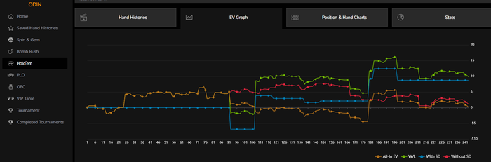 хотелось бы поразбирать раздачи. сегодня пара раздач была интересных. да и сам чувствую что стал в игре немного лучше разбираться, но после подобной безшансовой лотерии все желание пропадает наглухо что-либо делать. лучше пока не поздно сосредоточусь на своих продажах в интернете, там математика хотя бы работает правильно и раздаю я сам себе честно. а здесь мошенничество чистой воды и терпеть такое нет желания.