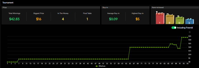 фрироллы почти 100шт. да уж, тут конкретно прям подставляли, ну и призовых всего топ15, тяжело попасть. но в целом думаю следующие 100 сыграю получше.