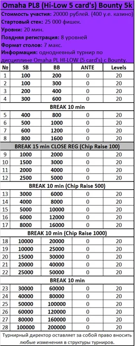 ✳️ 6 мая: Omaha PL Mix 5 cards Bounty 4.000.