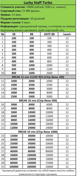 🔖 Lucky Staff - турнир, в котором можно увеличить свой стартовый стек за чаевые для персонала. Недорогой, лёгкий и весёлый турнир. Таких турниров несколько. В разных форматах: баунти, турбо.