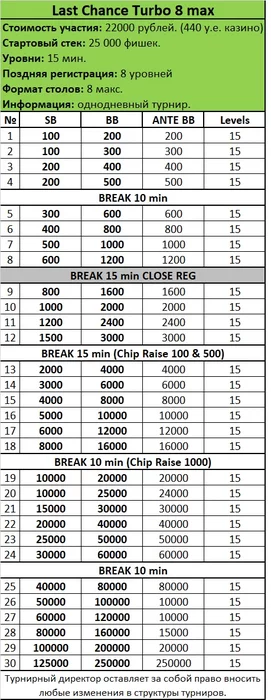 🔖Last Chance - последний турнир чемпионата в формате 8 макс.