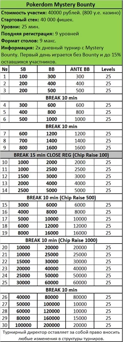 Входной день будет только первый, бай-ин составит 40,000 рублей, за которые игрок получит стек 40.000 фишек.