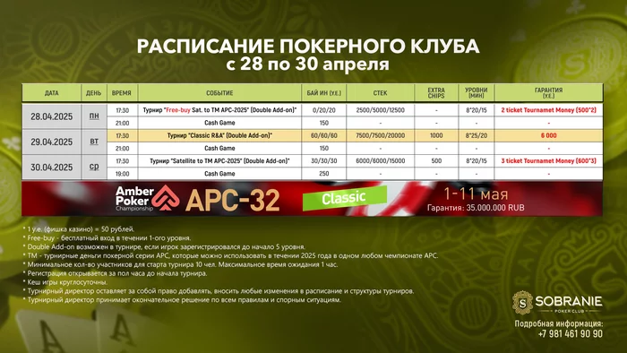 С радостью ждем всех в гости на "Amber Poker Championship 32 Classic" в казино SOBRANIE.