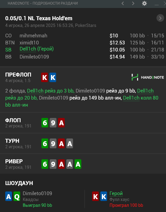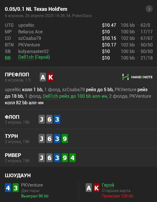 Получился шикарный отрезок, получалось буквально все что я хотел. Очень приятное чувство когда все твои блефы проходят, а велью руки оплачивают.