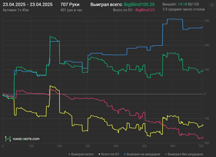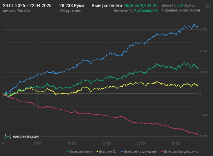 По идее, с моим стилем игры красная не должна валиться, но что есть, то есть, будем исправлять. В данный момент закончил изучение OR и 3B по префлопу, очень важно в ближайшее время выучить защиту на BB.