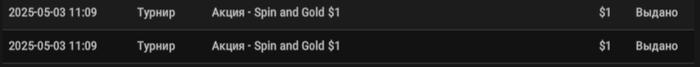 Кроме того, создал одиночное соревнование с банкроллом: с этого дня до 31.05.25 (30 дней) я пробую выиграть 100$ в дисциплине "Spin&Gold", посмотрим что получится.