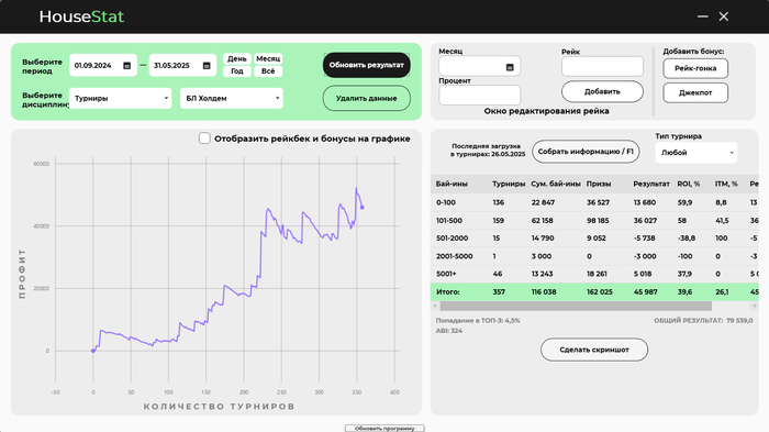 Про его величество кэш мы продолжим уже в следующий раз, а пока как и заказывали - картиночки. Разорился на пятихатку и приобрёл HouseStat. Не понял чо за турики 5к+ (выше 1к не играл вроде), но судя по оголтелым кэшаутам, в итоге вышло даже чуть больше. Так что в принципе результаты близкие к правде.