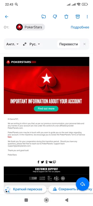 6 марта письмо от старзов о закрытии и переносе денег с сылкой на условия что все перенесут сайт и конвертации покерспланет