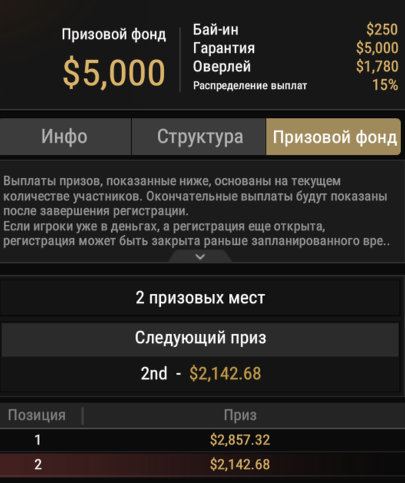 Места и количество призовых мест указано во вкладке "Структура", но именно про процент выплат нигде нет информации...
