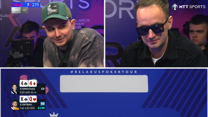 На финалку залетел с 20бб 6ым стеком, ицм понимал, ждал по началку вылетов коротышей, что и произошло, потом пару раз защитил бб безрезультативно, на второй час игры остался самым коротким, так как еще один коротыш удвоился, и на СО поднял 44 со стеком 12,4бб и решил по ренджам рояльским поставить оллын в лайнап 2 любителя, один рег, напоролся на КДо на бб, опп долго думал, колл, я аут