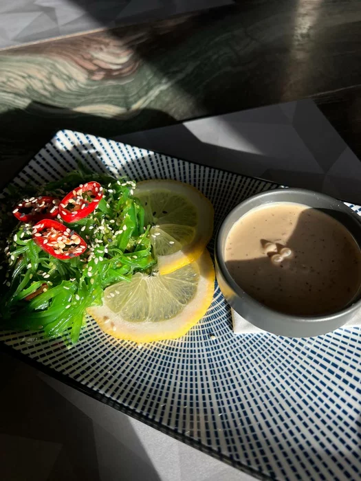 Итак, тяжелая мебель, камни, растения - наверное, так и выглядит японский стиль) ну а вообще - красиво, уютно и располагает к тому, чтобы посидеть тут подольше. Салат с чукой классный, если не думать о цене (16 бр ), суши как суши - вкусно, вок с уткой вроде тоже. Если бы не ограничения по времени, взяли бы сет побольше и посидели еще. Цены выше среднего по городу.