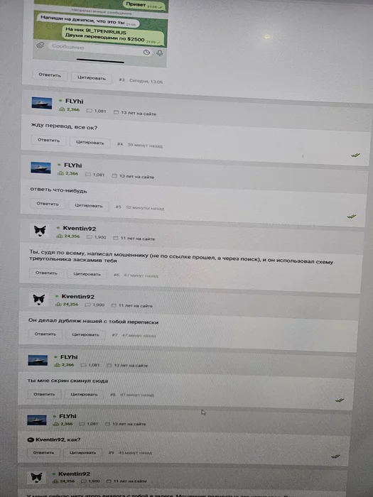 Я понимаю, что терять такую сумму неприятно, но ты сам подставился под мошенника, не перейдя по ссылке в профиле Квентина. Видимо, нашёл его чере поиск. Далее последовал классический треугольник, коих в этом разделе уже было несчетное количество.