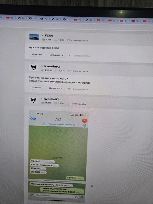 Переписка велась на джипси, потом в телеге. В телеграм я писал уже мошеннику, так как не перешел по ссылке (с компа на телефон). Мошенник имел такой же аватар, а ник отличался на одну букву. Мошенника я попросил прислать подтверждение на джипси, что я общаюсь с реальным Квентином с Джипси. на что тут же получил скрин шот от Квентина на джипси (который ему выслал мошенник) . Там скопирована переписка, но не мой аккаунт телеги, чего я не заметил во время переписки. В этот момент, по словам Квентина, мошенник с другой телеги общался с Квентином.