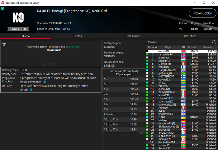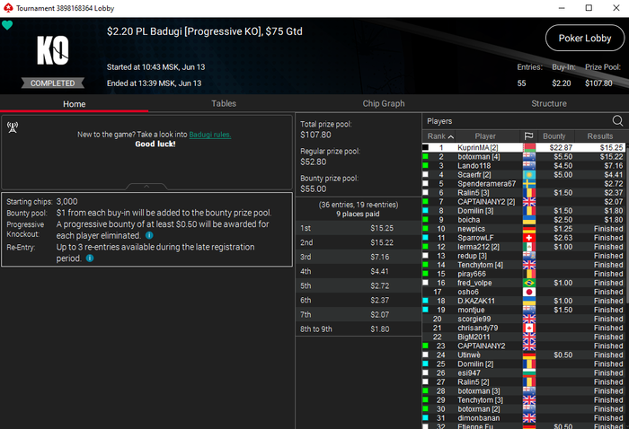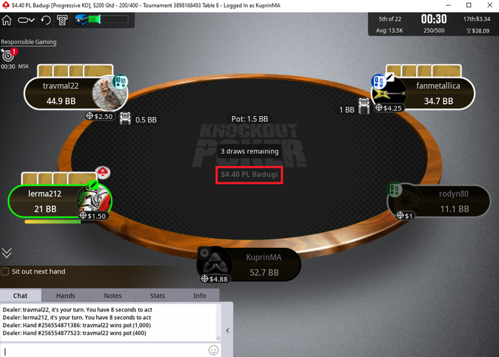 Как писал выше, из-за долбанных блох вчера вечером ни о какой игре не могло идти речи. И сегодня утром тоже думал ехать в Гомель, поэтому играть не планировал, но так как малая почувствовала себя лучше, я всё-таки успел прыгнуть в позднюю регу в бадуги и выиграть шмакодявке на похавать.