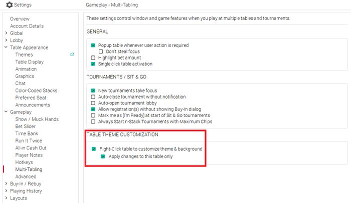 Плюс советую в настройках, если играешь на старзах, сделать функцию изменения фона стола только для конкретного, выбранного стола. Тем самым можно условно омаху помечать красным сукном, а бадуги зелёным.