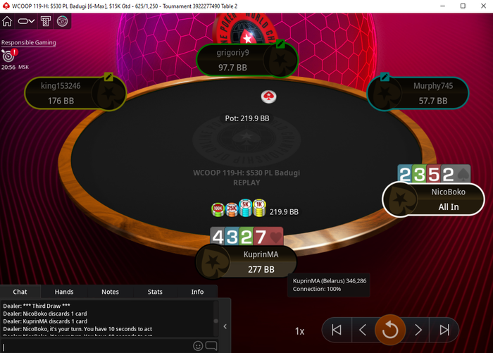 Согласен! :) Тренировка перед игрой и как итог наш победный хедз-ап - это реально кинематографично. Сюда ещё можно добавить игрока, который занял 3 место. Во время тренировки я как раз говорил Витале именно про него. Что в этом турнире самыми сильными будем мы с Казаком. Достаточно просто посмотреть наши результаты в PL Badugi. Мы каждый день много лет играем в бадуги, и у нас лучшие результаты из всего пула регов. В итоге мы и добрались до 3-мах, при этом не сделав ни одного ре-энтри, но беккер ученик быстро превзошёл учителя, обыграв в 3-мах самых сильных оппонентов. Конечно, здесь сказалось влияние ICM. Так как в моменте Виталя сильно ушёл в отрыв, а мы с Казаком были вынуждены играть под серьёзным ICM давлением и солидным для нас обоих пэйджампом. По этой причине в хедз-ап против Витали я вышел с разницей 11 к 1, и шансов раскрутиться было немного. Отмечу ещё, что Казак отобрался через сателлит за 22$, что только подтверждает его силу. Ну а тот же Падс там 5 входов ерунду творил, вообще не в ту сторону играл. Поэтому для меня история получилась красивая и даже кинематографичная, как ты правильно выразилась. Хотя конечно хотелось получить заветный трофей и поставить его у себя дома на полке, но, думаю, всё ещё впереди.