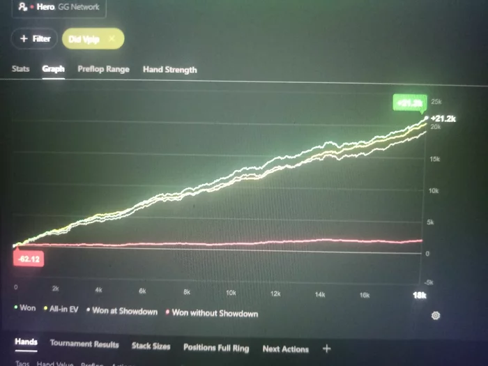 еще я не оч давно мультитейблю, ну вот с апреля по 12 столов на протяжении 10-16 часов играю, в общем поначалу как то более сконцентрированно играл те турики в которых сразу складывалось, а на остальные забивалось +- на автомате отыгрывалось, теперь пытаюсь все столы ПРОЧУВСТВОВАТЬ так сказать как будто это все мое родное все надо, я бы и дальше хуi забивал на рандомные гиперы по доллару которые в загрузке чтобы занимать свободное место пока не появится более интересный турик, но что-то совсем ничего не затаскивается и меня это уже конкретно напрягает