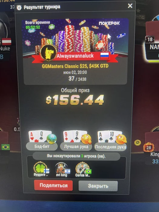Вчера сыграл несколько турниров и результаты следующие, хочу больше играть гг мастерс на покерке, играли ли вы такие турики?