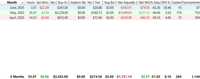 Чисто покерный пост, результаты MBR $3 по последним месяцам и общий: