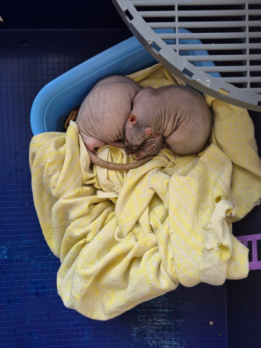 Бабл буквально как сын, приехал очень маленьким и больным, выходил и вырастил его с детства, долго жил один, потом подселили крупного волосатого рексика, они сдружились, а потом и Маркиз ещё разбавил компашку, и они рексика пытаются "подстричь" всегда 😄