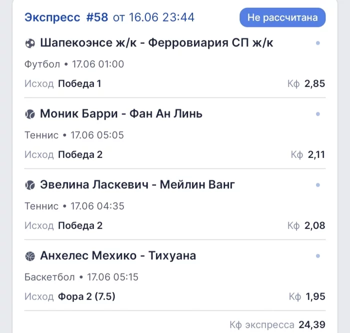 вчера не успел добавить две ставки, одна сыграла - вторая нет, в итоге в ноль по сути, можно даже не добавлять в статистику