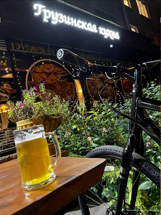 В общем, налутав велик и осознав, что хочу кататься каждый день, я придумал удобный маршрут в 15-20 километров (с несколькими вариациями пути), который проезжаю всегда, когда погода хоть как-то позволяет. Ближе к концу этого маршрута есть ресторан «Ели-пили» на улице Школьной, между станциями «Старая деревня» и «Черная речка». С виду обычная грузинка, даже скорее простенькая. Интерьер скромный, цены демократичные, меню стандартное, ничто не обещает чудес. Но готовят там так, что можно руки нечаянно отгрызть. И народ в курсе: несмотря на то, что находится ресторан в совсем не «гулятельной» локации (вряд ли туристы в здравом уме когда-то забредают на богом забытую улицу Школьную), он вечно битком. Я раз 20 (не преувеличиваю) слышал, как люди, уходя, искренне и восхищенно нахваливали еду. Там без конца проводят корпоративы, поминки и юбилеи, иногда там бывает два мероприятия параллельно. Ну потому что ОЧЕНЬ вкусно, блин.