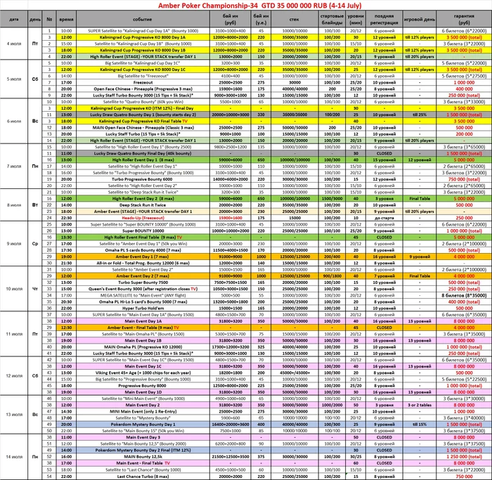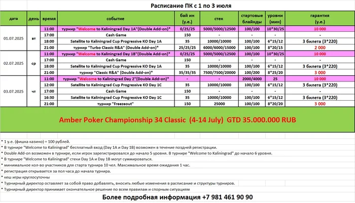 - 15:00 МСК (14:00 по Калининграду) степ отбор к финальному сателлиту Main Event Day 1A.