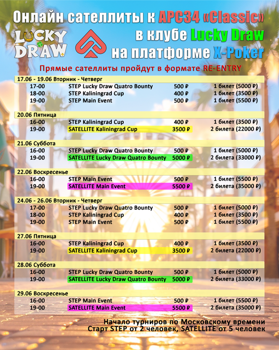 - 16:00 МСК (15:00 по Калининграду) степ к финальному сателлиту Lucky Draw Quattro Bounty.