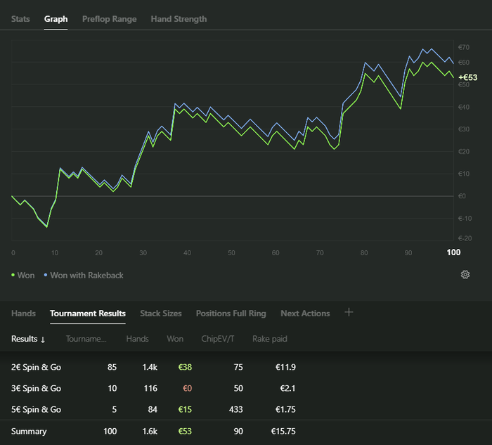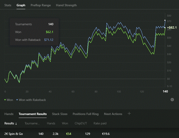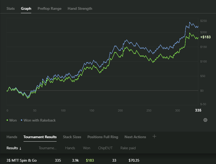 Надо с покерка такие-же графики с линией рейкбека сделать. Там по дефолту просто 0$ рейк с турнира. Так как больше всего в покере я люблю графики, надо бы заняться этим.