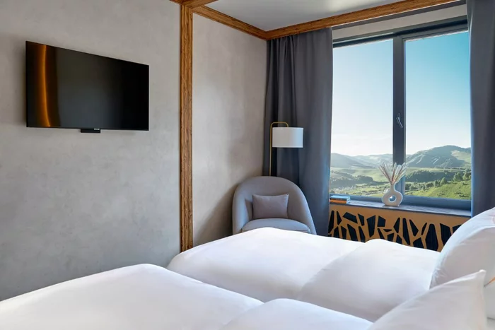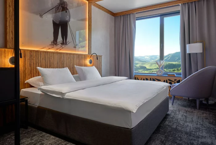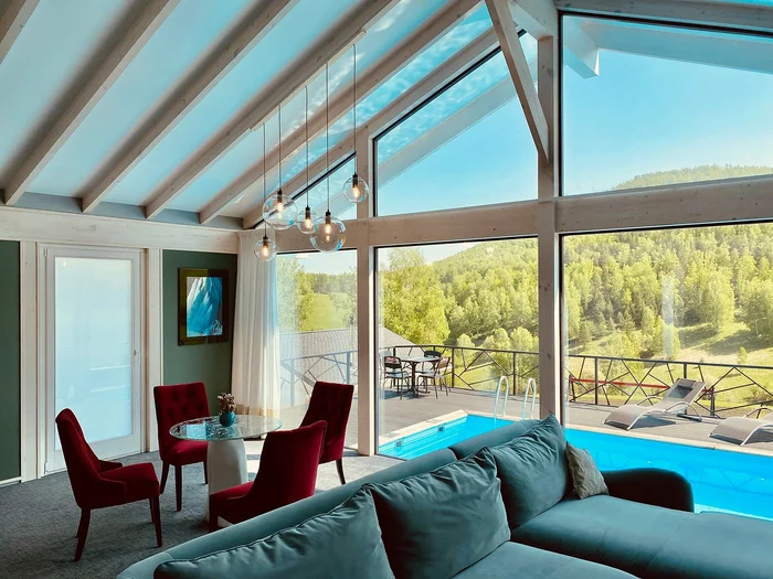 Гости могут выбрать, в каком типе апартаментов жить: уютный номер, или же не менее уютные шале. Причем стоимость двухместного номера с завтраком будет одинаковой и там, и там — от ₽17,400/ночь. Внимание! Номера в этом отеле доступны для бронирования только с 18 августа.
