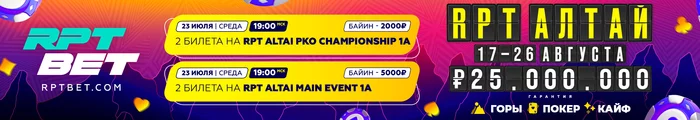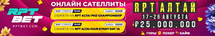 💰 Десятки билетов и пакеты с проживанием — с 19 июля на RPTBET стартуют онлайн-сателлиты к августовскому RPT на Алтае!