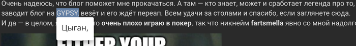 Очень надеюсь, что блог поможет мне прокачаться. А там — кто знает, может и сработает легенда про то, что каждому, кто заводит блог на GYPSY, везёт и его ждёт переап. Всем удачи за столами и спасибо, если заглянете сюда.