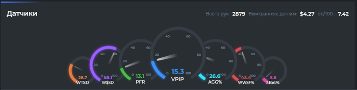 Всего рук: 2795(пару раздач не затрекало)