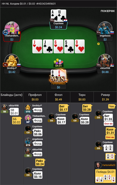 И да — в целом, я считаю, что очень плохо играю в покер, так что никнейм fartsmella явно со мной надолго 😄.