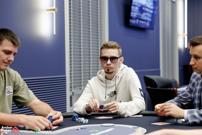 Евгений открыл и выиграл раздачу, у Михаила были .