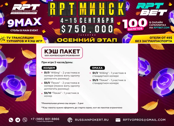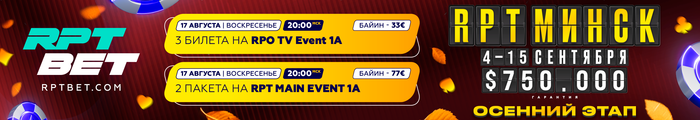 💰 КЭШ-ПАКЕТЫ к серии RPT 4-15 сентября в Минске — бесплатный отель даже для игроков лимита 1/3!