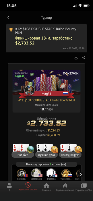 я игрок средних лимитов, играю на покерок уже более пяти лет ) были и взлеты и падения 💯