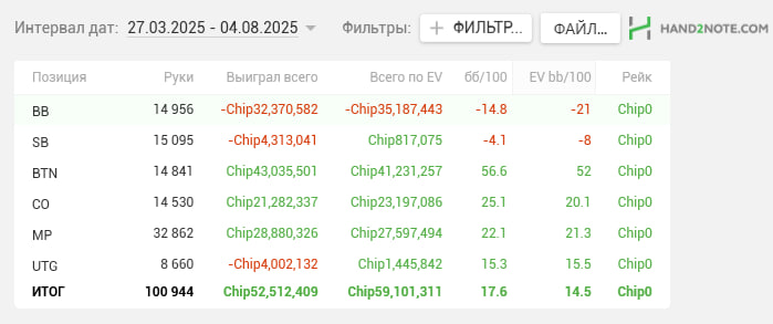 Мои винрейты за последние 100к рук: