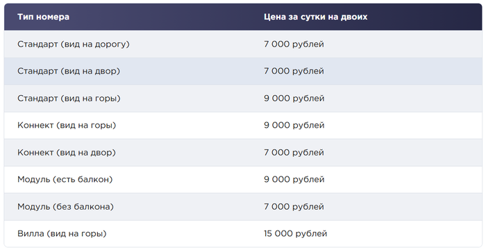 ▪️ Стандарт (вид на горы) 9 000 рублей 8 000 рублей*
