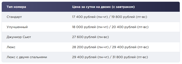▪️"Улучшенный" - 18 000 рублей (пн-чт) / 20 400 рублей (пт-вс)