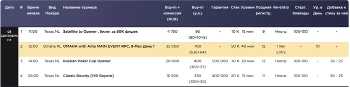 🔝 Два Мейн Ивента по Омахе и Холдему с бай-ином 35 000 рублей и правилом: один ре-энтри в день