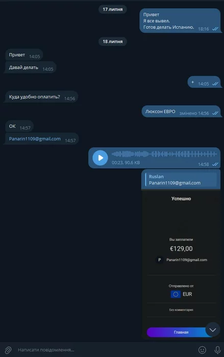 18.07.25 — перевёл 129 € через Luxon. Ruslan пообещал, что аккаунт будет готов через неделю.