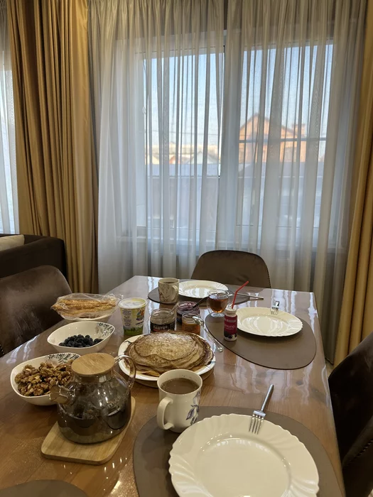 Вообщем настроение фоново интересное и хочется выпить бокал японского ликера , но я его не заказала и ждать долго . Подошла к мужу и говорю : Давай не будем включаться в эти сценарии , хочешь блинчики пожарю ? 😂