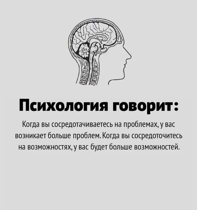 Наш мозг состоит из двух частей: одна — думающая, а вторая — доказывающая. Всё, что думает и представляет думающая, то доказывающая подтверждает — ситуациями, реакциями и действиями.