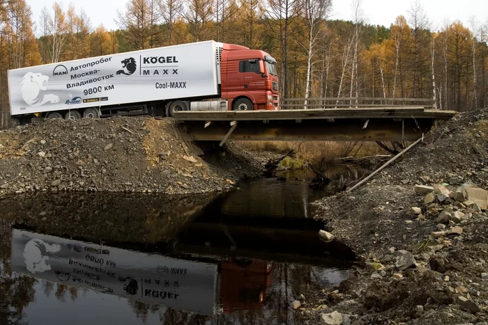 Его в 2007 году устраивала компания MAN. Они выпустили новый грузовик — MAN TGX и решили в качестве пиар-акции прокатить его по всей России. Типа если он пройдет этот путь, то он пройдет везде.