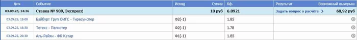 Fabolous @ 02.09.25Нужно было все таки добавить для сравнения экспресс из 2 - 3 событий с общ кф 10+. Как я понимаю упомянутый выше экспресс с кф 10+ опять будет в виде портянки из разношерстной мишуры.