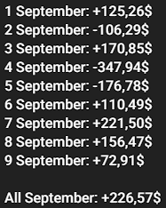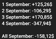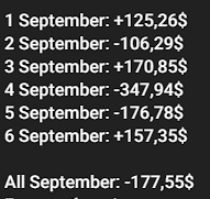 P.S. Вчера поиграл еще немного и проиграл около 50$, поэтому результаты за 6 сентября отличаются